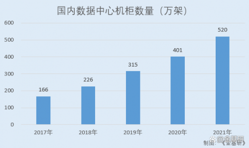 近年來,國內(nèi)數(shù)據(jù)中心機(jī)柜數(shù)量保持穩(wěn)定增長。據(jù)中國信息通信研究院數(shù)據(jù),2017-2021年,國內(nèi)數(shù)據(jù)中心機(jī)柜數(shù)量分別為166萬架、226萬架、315萬架、401萬架、520萬架。
