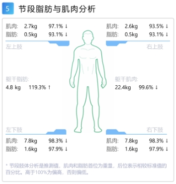 ▲ 宅客體測報告節(jié)段脂肪與肌肉分析報告