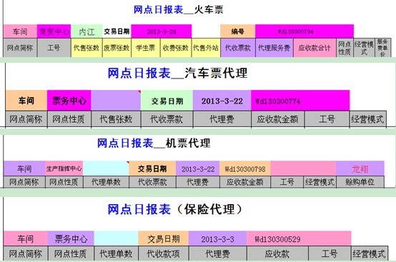四川西南鐵路國際旅行總社日常處理模塊由各使用單位錄入本單位的主要業(yè)務(wù)如火車票、汽車票、機(jī)票、保險等每個代售點(diǎn)每天的銷售情況。如下:網(wǎng)點(diǎn)日報表—(火車票、汽車票、機(jī)票、保險)