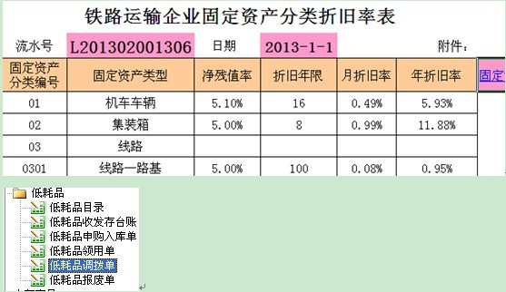 四川西南鐵路國際旅行總社資產(chǎn)管理可以按固定資產(chǎn)卡片、固定資產(chǎn)分類折舊率表(如下)、固定資產(chǎn)折舊分部門計算表、固定資產(chǎn)管理臺帳、固定資產(chǎn)折舊明細(xì)表、更新改造計劃項目審批、固定資產(chǎn)購置、工程改造審批表幾個方面子目錄分別錄入。