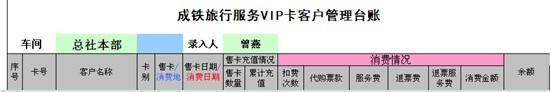 四川西南鐵路國際旅行總社VIP客戶消費(fèi)記錄子目錄根據(jù)客戶名稱分別錄入;