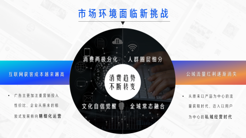 “降本增效”是互聯(lián)網(wǎng)進(jìn)入存量時代以來提及頻次最 多的關(guān)鍵詞之一。隨著互聯(lián)網(wǎng)獲客成本越來越高,公域流量紅利逐漸消失,廣告主更加注重營銷投入的性價比。由此帶來的變化是,企業(yè)從原來的“粗放式發(fā)展”轉(zhuǎn)向“精細(xì)化運(yùn)營”,從原來以產(chǎn)品為中心的流量獲取時代,邁入以用戶為中心的私域經(jīng)營時代。