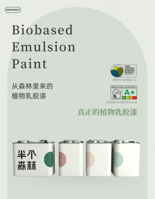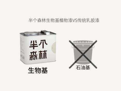 半個(gè)森林生物基植物乳膠漆采用生物基可降解技術(shù)提取天然植物原料,代替石油原料制成。這種植物漆材料源頭更環(huán)保,更趨向零甲醛VOC,讓您的家居空間更加安全健康。