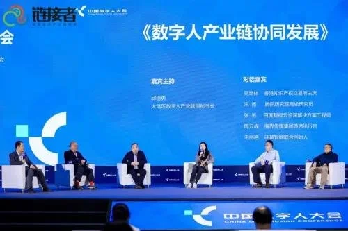 在《數字人產業(yè)鏈協同發(fā)展》圓桌對話環(huán)節(jié)中,大灣區(qū)數字人產業(yè)聯盟秘書長邱道勇、 香港知識產權交易所主 席吳高林、騰訊研究院高級研究員宋揚、百度智能云資深解決方案工程師張彬、商界傳媒集團首席執(zhí)行官周云成、硅基智能聯合創(chuàng)始人毛麗艷圍繞數字人展開了產業(yè)鏈、商業(yè)等方面討論。