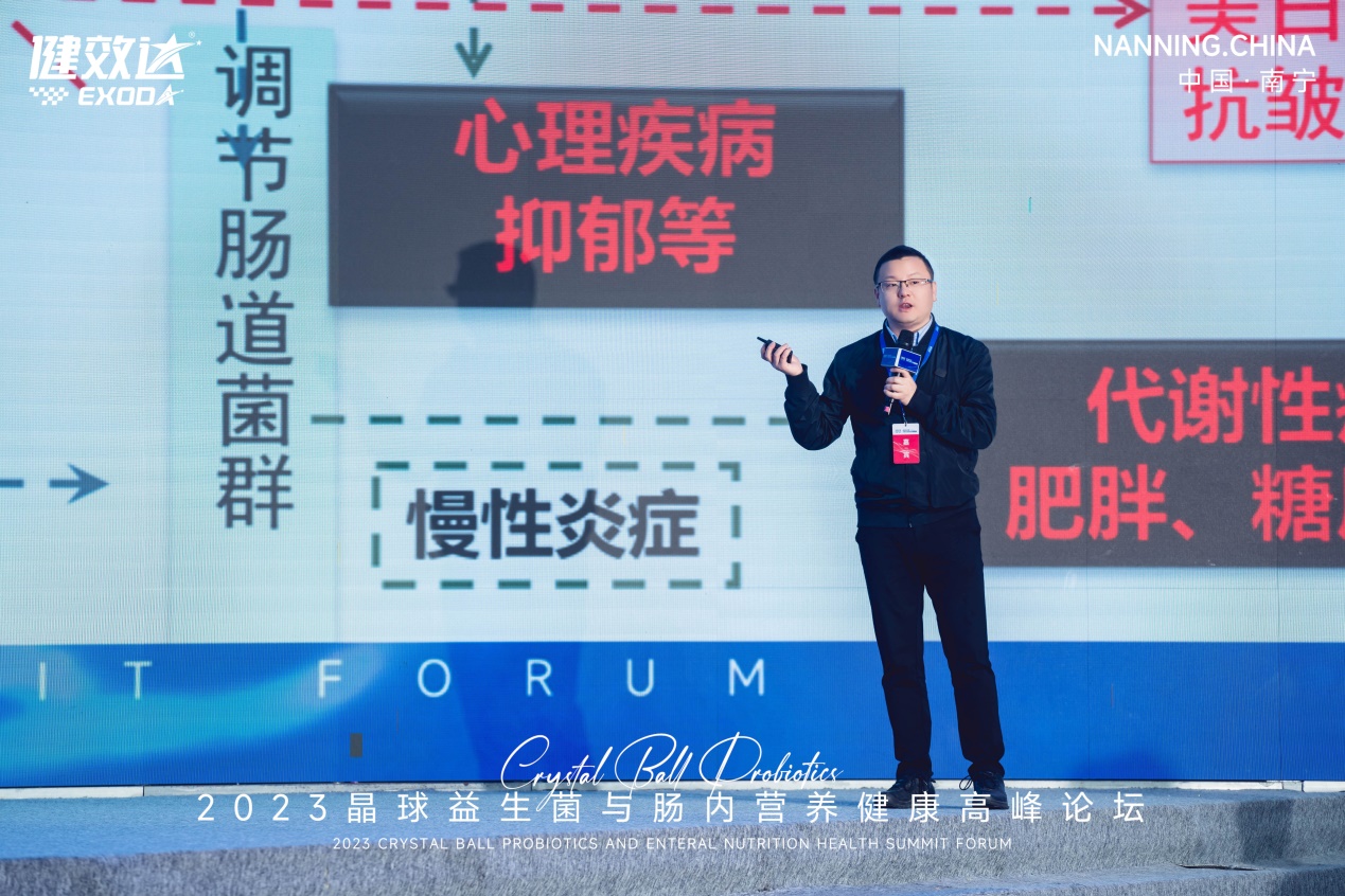 南京農(nóng)業(yè)大學(xué)食品科技學(xué)院教授、博士研究生導(dǎo)師李偉教授帶來《益生菌及其代謝產(chǎn)物與人體健康》主題演講。隨著生物技術(shù)、人工智能等新技術(shù)的發(fā)展,益生菌及其代謝產(chǎn)物的生產(chǎn)加工技術(shù)得到大幅提升,現(xiàn)益生菌領(lǐng)域前沿革新科技——包埋技術(shù)已同步應(yīng)用于疫苗領(lǐng)域生產(chǎn),大幅提升活菌存活率。未來,益生菌制劑的應(yīng)用范疇將從保健品、食品市場擴大至農(nóng)業(yè)、藥品等領(lǐng)域,涉及更廣泛人群。李教授還列舉了多項國際權(quán) 威研究和實驗數(shù)據(jù),為腸道微生態(tài)相關(guān)研究帶來新訊息。