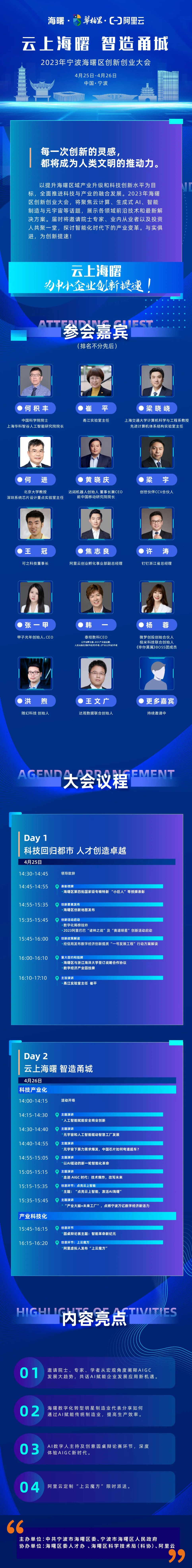 而即將到來的2023海曙區(qū)創(chuàng)新創(chuàng)業(yè)大會,將持續(xù)聚焦云計(jì)算、生成式AI、智能制造、與工業(yè)元宇宙等新興業(yè)態(tài),展示各領(lǐng)域前沿技術(shù)和新解決方案。屆時(shí)將邀請業(yè)內(nèi)從業(yè)者、院士專家及投 資人共聚一堂,探討產(chǎn)業(yè)變革與創(chuàng)新創(chuàng)業(yè)之路,屆時(shí)期待您的到來!