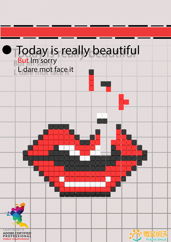 我認(rèn)為這個作品具備優(yōu)秀的信息傳遞性,能夠在第 一時間就抓住觀眾的眼球,創(chuàng)意構(gòu)思十分具有巧思,創(chuàng)作者能夠想到用俄羅斯方塊來做公益海報,非常有趣也非常新穎,從中我也看到了年輕一代人的創(chuàng)意力量!
