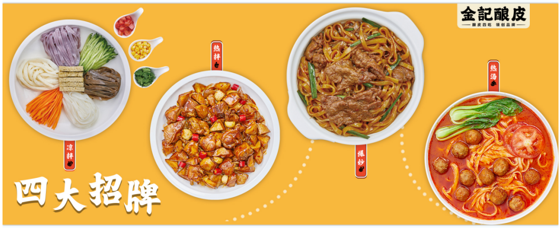 金記釀皮”創(chuàng)建于2005年,專注釀皮品類18年,是國(guó)內(nèi)首家在店面實(shí)現(xiàn)釀皮現(xiàn)做的品牌;金記釀皮不僅提升了釀皮行業(yè)制作的新標(biāo)準(zhǔn),同時(shí)解決了傳統(tǒng)前店后廠的重餐飲模式;金記首創(chuàng)的以釀皮四吃(涼拌、熱拌、爆炒、熱湯)為核心的差異化品類,突破了釀皮品類季節(jié)性的限制;并通過(guò)20多家直營(yíng)門店的多業(yè)態(tài)、多店型盈利模型的打造、多年健康且持續(xù)的經(jīng)營(yíng),已在快餐領(lǐng)域形成了成功的品牌和商業(yè)模式,目前已與合生匯、印象城、龍湖天街、萬(wàn)達(dá)、萬(wàn)象匯、中海、金鷹、首創(chuàng)等知名商業(yè)達(dá)成合作,并繼續(xù)擴(kuò)大布局。