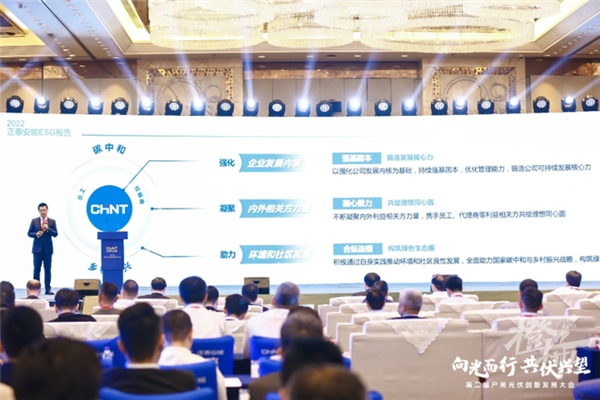 大會(huì)上,《正泰安能ESG報(bào)告》正式發(fā)布,這也是中國戶用光伏行業(yè)的首份ESG報(bào)告。正泰安能董事長陸川從環(huán)境、社會(huì)和公司治理維度進(jìn)行了解讀,梳理正泰安能如何通過運(yùn)營、品牌、渠道三大核心能力,在千村萬戶踐行“雙碳目標(biāo)”。