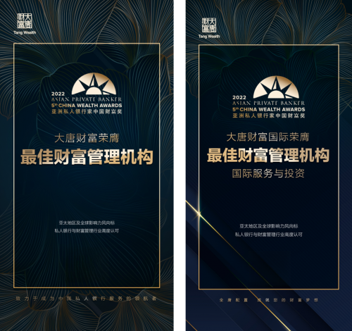 除了連續(xù)多年獲得投中榜單認可之外,大唐財富也先后獲得了國際權(quán)威媒體《亞洲私人銀行家》評選的2022年度“最 佳財富管理機構(gòu)獎”“最 佳財富管理機構(gòu)-國際服務(wù)與投 資獎”;胡潤百富評選的2022“年度財富管理機構(gòu)最 佳表現(xiàn)獎”等國際大獎;