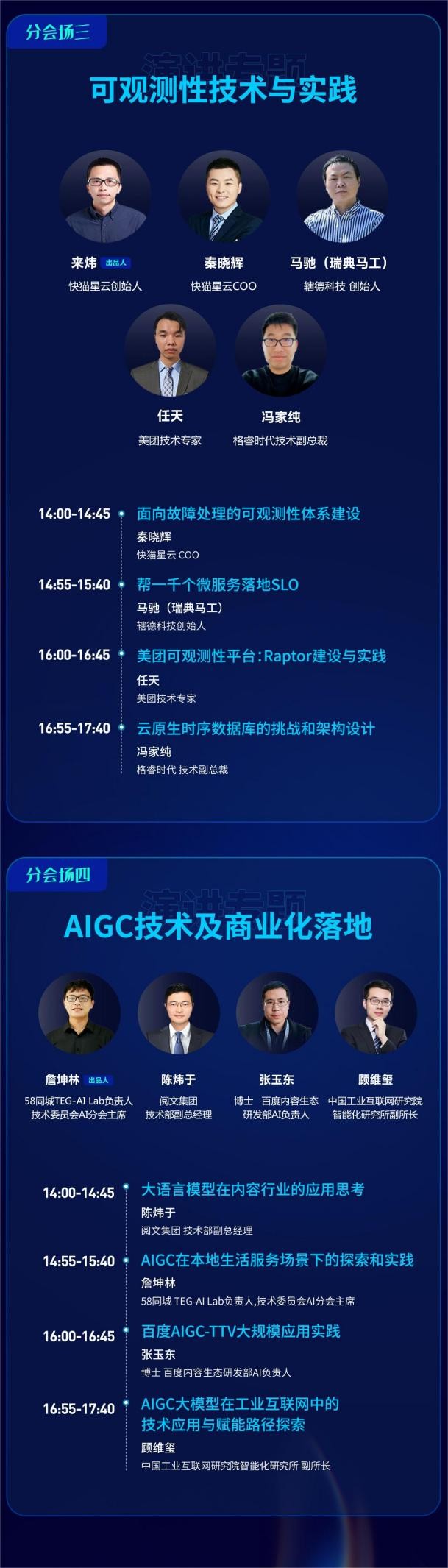 此外,在第二天下午,我們還設(shè)置了AIGC技術(shù)及商業(yè)化落地分會(huì)場(chǎng),就主會(huì)場(chǎng)上未深入探討的部分話題,邀請(qǐng)四位老師從實(shí)踐應(yīng)用各個(gè)方面,進(jìn)行更深入的解讀。