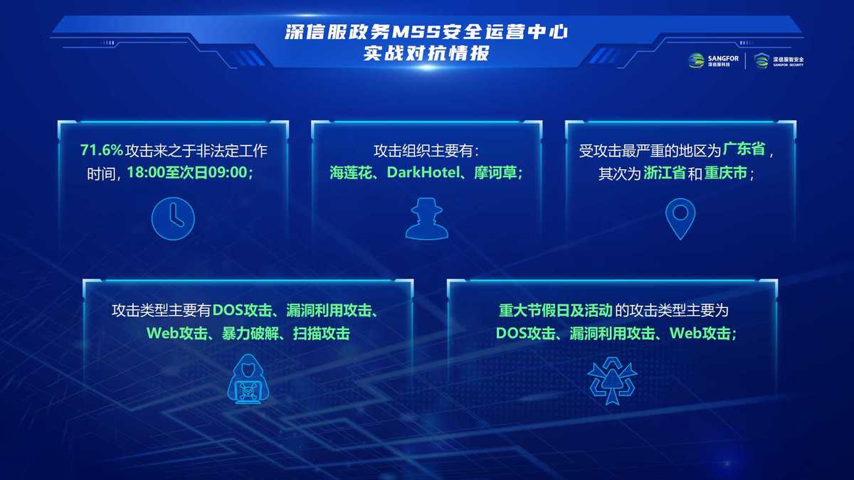 深信服科技副總裁、安全服務(wù)BG副總經(jīng)理李文滔首先匯報(bào)了政務(wù)MSS在過去一年洞察到的數(shù)據(jù)及態(tài)勢。