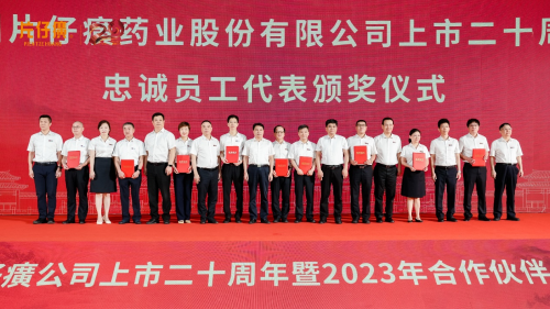 值此上市二十周年之際,2023年6月16日,以“攜手同心,穩(wěn)健前行”為主題的片仔癀公司上市二十周年暨全國(guó)合作伙伴大會(huì)在漳州薌江酒店順利舉行。漳州市副市 長(zhǎng)洪泰偉、漳州市國(guó)資委主任賴(lài)紹雄、漳州市慈善總會(huì)副會(huì)長(zhǎng)兼秘書(shū)長(zhǎng)張少偉受邀參加。藥業(yè)高管及子公司高管、忠誠(chéng)員工代表、特邀名醫(yī)及專(zhuān)家、片仔癀全球合作伙伴等近600人出席。