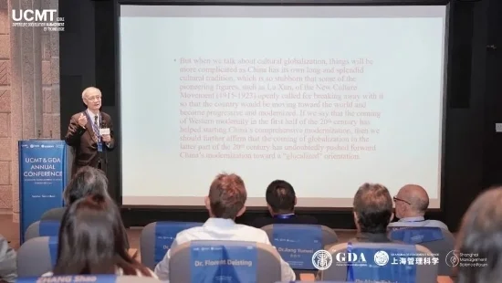 上海交通大學(xué)人文學(xué)院院長、歐洲科學(xué)院外籍院士 王寧教授,波爾多大學(xué)金融學(xué)博導(dǎo)、圖盧茲商學(xué)院社會轉(zhuǎn)型部門總監(jiān) Dr. Florent Deisting,UCMT總督學(xué)、華東師范大學(xué)經(jīng)濟與管理學(xué)部 賈利軍教授分別進行了主題演講。