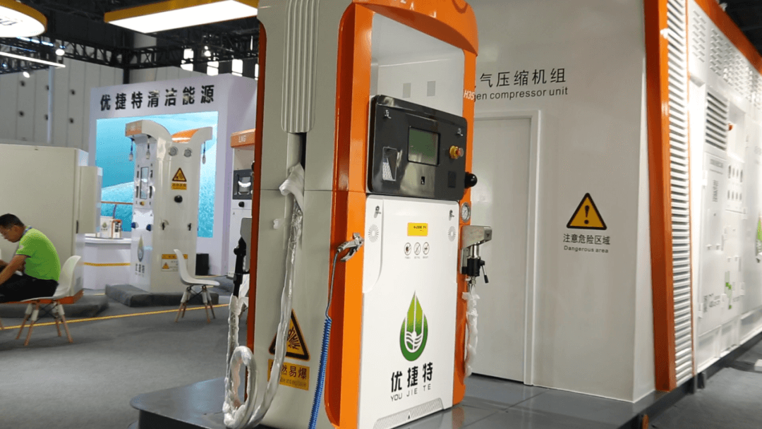 優(yōu)捷特清潔能源有限公司展區(qū)現(xiàn)場提供了2022年冬奧會核心賽區(qū)的加氫站模型沙盤,以及業(yè)內(nèi)首架35MPa和70MPa兩種壓力氫氣加注一體化撬。