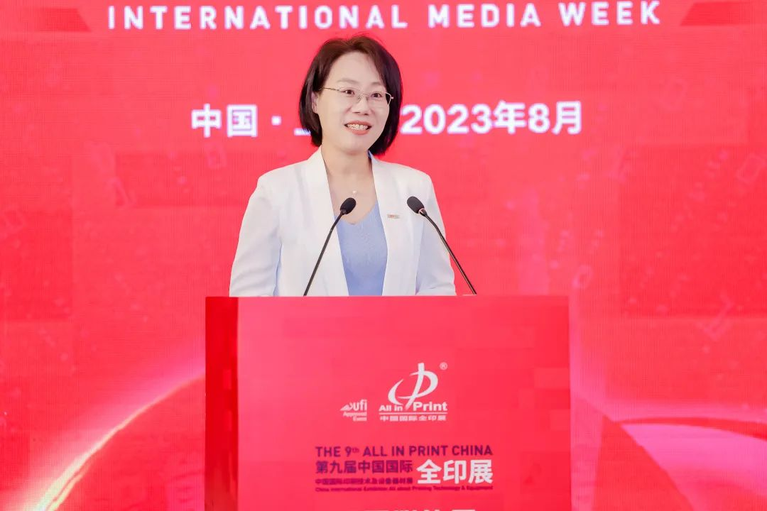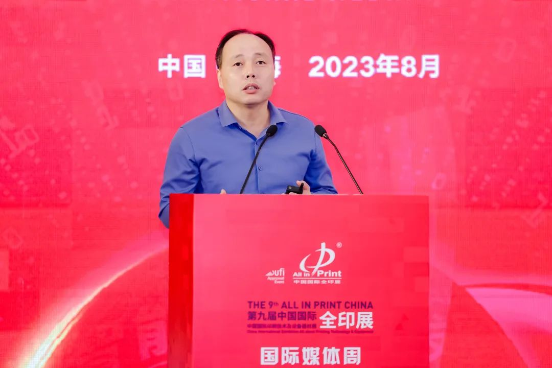 第九屆中國國際全印展即將于2023年11月1~4日在上海新國際博覽中心盛大開幕。8月15日,第九屆中國國際全印展國際媒體周發(fā)布會召開。中宣部印刷發(fā)行局局長、中國印刷技術(shù)協(xié)會理事長劉曉凱,上海市委宣傳部印刷發(fā)行處處長曾原,中國印刷技術(shù)協(xié)會副理事長、秘書長陳迎新,中國印刷技術(shù)協(xié)會副理事長、中國文化產(chǎn)業(yè)發(fā)展集團(tuán)有限公司黨委委員、副總經(jīng)理常曉霞,中國印刷科學(xué)技術(shù)研究院院長趙鵬飛,北京科印傳媒文化股份有限公司董事長、總經(jīng)理劉軼平,杜塞爾多夫展覽(上海)有限公司事業(yè)部總經(jīng)理馬睿博出席,來自全國各地40多個印刷、包裝協(xié)會的領(lǐng) 導(dǎo),眾多知名展商代表,印刷企業(yè)代表,行業(yè)知名媒體等200多名嘉賓共襄盛會。北京科印傳媒文化股份有限公司會展事業(yè)群總經(jīng)理王聰媛主持本次活動。