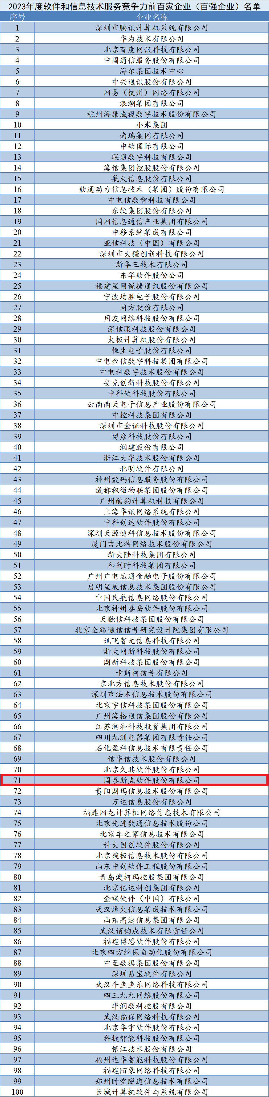 2023年度軟件和信息技術(shù)服務(wù)競(jìng)爭(zhēng)力百?gòu)?qiáng)企業(yè)榜單