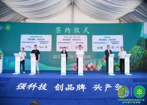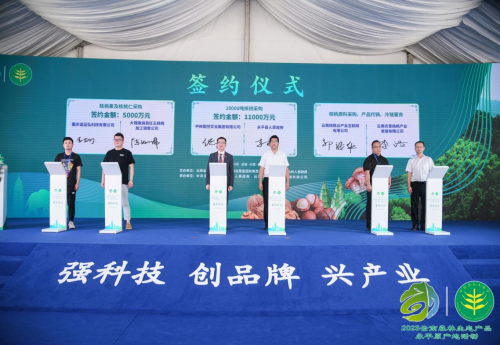在開幕式現(xiàn)場舉行了“國家永平核桃產(chǎn)業(yè)示范園區(qū)”的揭牌儀式。省商務(wù)廳和省林業(yè)和草原科學(xué)院分別對云南省林草產(chǎn)品追溯及食用林產(chǎn)品安全監(jiān)測體系進(jìn)行了推介。此外,中林國控實業(yè)集團(tuán)有限公司、金達(dá)生物醫(yī)藥集團(tuán)有限公司等34 家企業(yè)和單位簽署的涉及核桃、澳洲堅果、中藥材等森林生態(tài)產(chǎn)品總意向合作金額高達(dá) 22.27 億元。