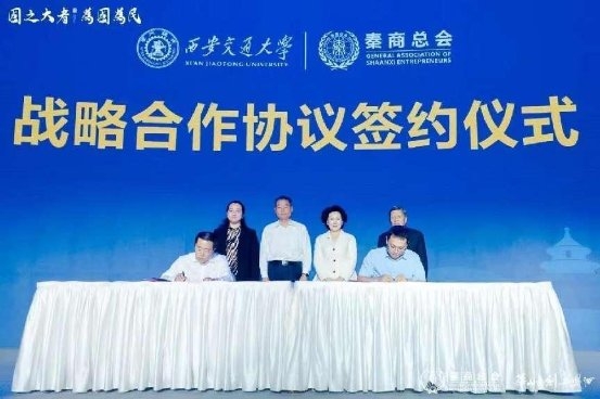 大會(huì)現(xiàn)場(chǎng),秦商總會(huì)與西安交通大學(xué)進(jìn)行了戰(zhàn)略合作簽約儀式。