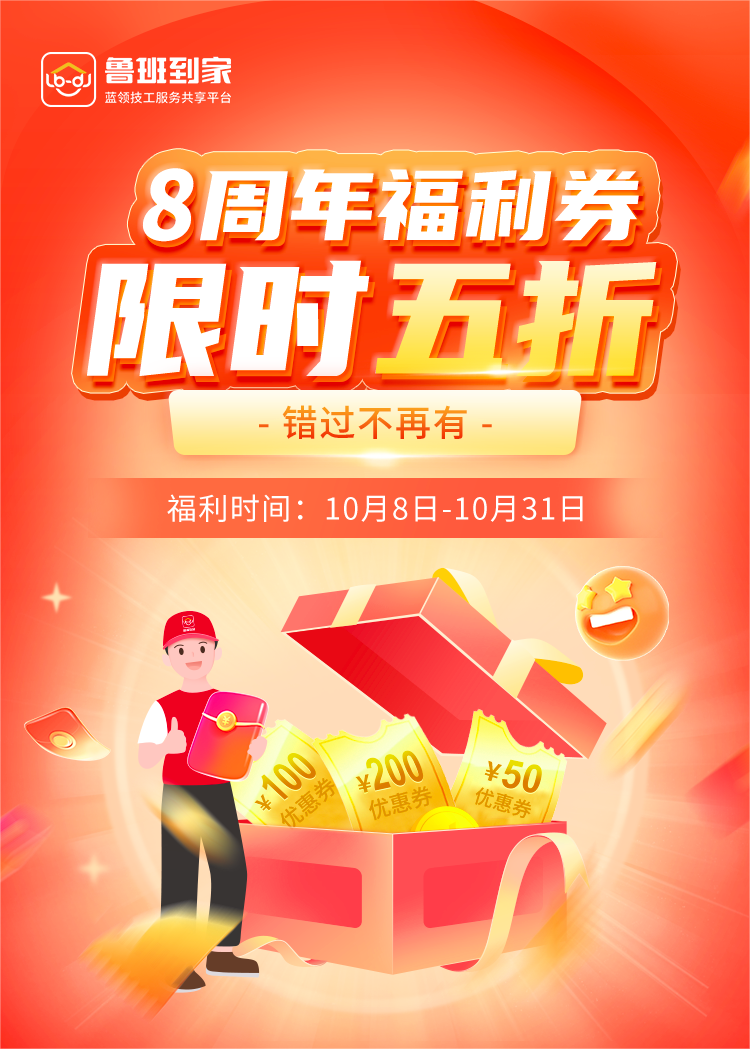 魯班到家8周年推出了“2億金秋狂歡”慶生禮