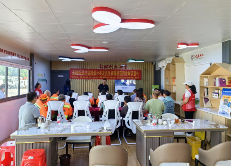 東曉街道蘭花社區(qū)啟航先鋒站黨支部胡書 記表示:非常感謝愛博綠前來為我們環(huán)衛(wèi)工人宣講垃圾減量分類及再生資源規(guī)范回收知識(shí),并開展“以車代庫”再生資源回收工作,這些舉措有助于區(qū)域內(nèi)垃圾分類和再生資源回收網(wǎng)絡(luò)體系建設(shè),提高轄區(qū)垃圾分類工作的質(zhì)量和效率。