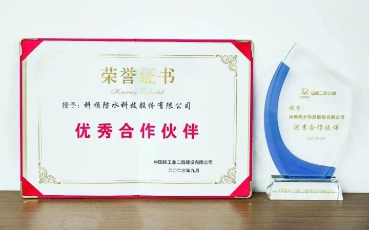 在2023年度中國(guó)核工業(yè)二四建設(shè)有限公司(簡(jiǎn)稱(chēng)“中核二四”)供應(yīng)商交流大會(huì)上,科順股份及科順能源以快速響應(yīng)的優(yōu)質(zhì)服務(wù)、高效創(chuàng)新的技術(shù)產(chǎn)品、互信共贏的合作機(jī)制,獲評(píng)中核二四優(yōu)秀合作伙伴稱(chēng)號(hào)。