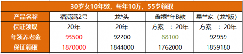 從產(chǎn)品本身來說,我們以30歲女客戶嫚女士,每年交10萬、交10年,55歲開始領(lǐng)取年金為例: