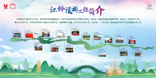 2007年4月,江鈴汽車聯(lián)合中國(guó)鄉(xiāng)村發(fā)展基金會(huì)、中國(guó)汽車報(bào)社、中國(guó)汽車新聞工作者共同發(fā)起了“江鈴·溪橋工程”公益項(xiàng)目,旨在為我國(guó)部分經(jīng)濟(jì)欠發(fā)達(dá)地區(qū)提供資金,援建便民橋,解決出行難。十幾年過(guò)去了,截止目前,江鈴汽車為項(xiàng)目投入資金3870多萬(wàn)元,“江鈴溪橋”的足跡遍布全國(guó)25個(gè)?。ㄊ?、自治區(qū))的128個(gè)縣,442座便民橋?yàn)?0余萬(wàn)欠發(fā)達(dá)地區(qū)的人們架起了“希望”。