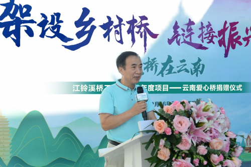 儀式上,江西萬(wàn)物生汽車科技有限公司董事長(zhǎng)聞?wù)窒砹伺c江鈴溪橋工程結(jié)緣的故事,他表示,江鈴溪橋工程是一個(gè)溫暖的公益項(xiàng)目,愿意與江鈴汽車一起攜手,讓愛(ài)心傳遞得更遠(yuǎn)。