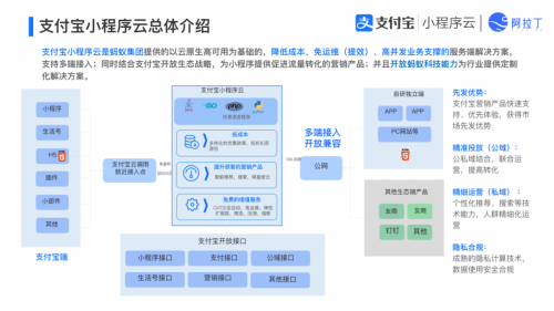 支付寶小程序云是螞蟻集團(tuán)提供的以云原生、高可用為基礎(chǔ)的服務(wù)端解決方案。它支持多端接入,能夠降低成本、免除運(yùn)維煩擾、支撐高并發(fā)業(yè)務(wù)需求。結(jié)合支付寶開放生態(tài)戰(zhàn)略,為支付寶小程序提供了更便捷的流量轉(zhuǎn)化途徑,提供更全面的用戶體驗(yàn)。