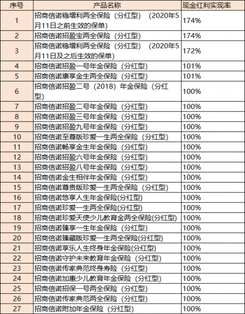 不過,我們也可以參考利多多3號所屬的招商信諾歷年的分紅實現(xiàn)率。據(jù)招商信諾官網(wǎng)顯示,招商信諾旗下的分紅險的分紅實現(xiàn)率大多在100%以上,高的能夠接近170%。所以,分紅還是值得期待的。