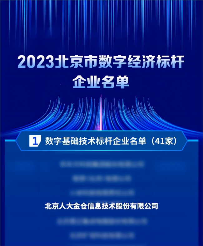2月29日,2023北京市數(shù)字經(jīng)濟標桿企業(yè)評價報告發(fā)布會在京圓滿召開。憑借企業(yè)技術能力突出,產(chǎn)品水平具有顯著創(chuàng)新性、先進性、示范性和行業(yè)代表性,人大金倉獲評“2023北京市數(shù)字經(jīng)濟標桿企業(yè)-數(shù)字基礎技術標桿企業(yè)”。