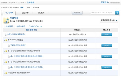 江門市網(wǎng)上辦事大廳在8個(gè)方面進(jìn)行了升級(jí),包括界面風(fēng)格優(yōu)化,與廣東省網(wǎng)上辦事大廳風(fēng)格銜接;第一批應(yīng)進(jìn)駐行政審批事項(xiàng)數(shù)提升至841項(xiàng),進(jìn)駐率達(dá)97.5%;全省首創(chuàng)建成“E鍵通”智能檢索系統(tǒng),輸入關(guān)鍵詞后,通過兩次點(diǎn)擊就能進(jìn)入網(wǎng)上申報(bào)頁面;“市民網(wǎng)頁”可提供服務(wù)數(shù)增加至41項(xiàng);開通“政企通”欄目,實(shí)現(xiàn)政策發(fā)布、政企互動(dòng)等多項(xiàng)功能;“效能監(jiān)察”欄目?jī)?yōu)化;網(wǎng)上辦事流程優(yōu)化;以及后臺(tái)管理系統(tǒng)升級(jí)。