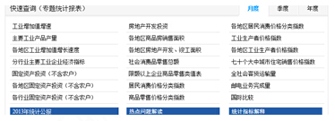 (2)已存儲(chǔ)600多萬(wàn)筆數(shù)據(jù),還與主要國(guó)際機(jī)構(gòu)數(shù)據(jù)庫(kù)網(wǎng)址集成對(duì)接。公眾完成網(wǎng)上注冊(cè)后就可以在"國(guó)家數(shù)據(jù)"方便地查詢?nèi)珖?guó)及31個(gè)省市的月度、季度、年度數(shù)據(jù)。