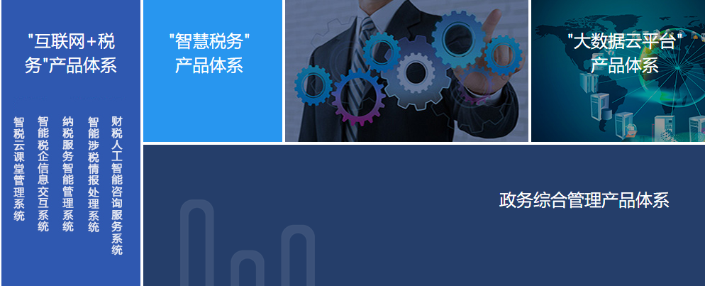 我們?nèi)闹铝τ谝远愂宅F(xiàn)代化為目標(biāo),以稅收征管改革為抓手,以數(shù)據(jù)管稅為引擎,引入“大數(shù)據(jù)”理論和“互聯(lián)網(wǎng)+”模式,構(gòu)建了“互聯(lián)網(wǎng)+稅務(wù)”產(chǎn)品體系、“智慧稅務(wù)”產(chǎn)品體系、“大數(shù)據(jù)云平臺(tái)”產(chǎn)品體系以及政務(wù)綜合管理產(chǎn)品體系,為稅收現(xiàn)代化提供強(qiáng)大的信息技術(shù)支撐。