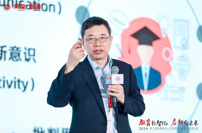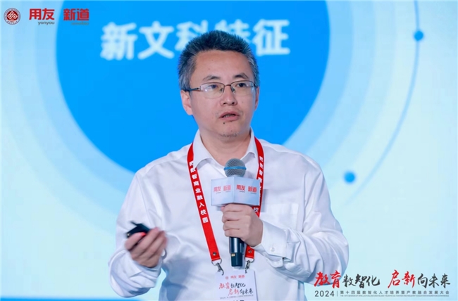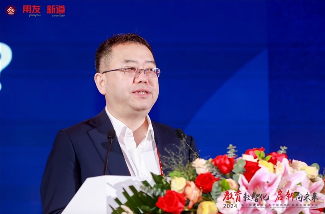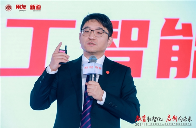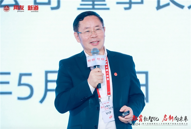新道科技股份有限公司副總裁賈大明以“教育數(shù)智化 啟新向未來—新質(zhì)生產(chǎn)力時(shí)代下的產(chǎn)教融合新基建”為題作主題演講。他表示,發(fā)展數(shù)字經(jīng)濟(jì)就是發(fā)展新質(zhì)生產(chǎn)力,數(shù)智人才就是新質(zhì)人才,新質(zhì)人才特征是更懂硬科技、更懂?dāng)?shù)據(jù)、更懂產(chǎn)業(yè),培養(yǎng)新質(zhì)人才要圍繞能力構(gòu)建產(chǎn)教融合、運(yùn)用科技構(gòu)建產(chǎn)教融合。賈大明介紹,新道科技以產(chǎn)業(yè)態(tài)勢感知平臺,聚焦人才供需適配;以產(chǎn)業(yè)鏈認(rèn)知平臺,構(gòu)建產(chǎn)業(yè)全局思維;以企業(yè)認(rèn)知實(shí)踐平臺,構(gòu)建企業(yè)全局思維;以商科專業(yè)創(chuàng)新平臺,構(gòu)建場景+、科技+、數(shù)據(jù)+;以工科專業(yè)創(chuàng)新平臺,構(gòu)建場景+、科技+、裝備+;以跨專業(yè)綜合實(shí)踐平臺,聚焦學(xué)科交叉綜訓(xùn);以能力訓(xùn)賽平臺,聚焦能力鑒定與競技;以數(shù)智科研平臺,助力教師科研創(chuàng)新;以產(chǎn)教融合大腦,聚焦產(chǎn)教資源平衡。賈大明表示,新道科技是產(chǎn)教融合戰(zhàn)略伙伴,能構(gòu)建用友生態(tài)全流程、多形態(tài)的閉環(huán)合作;是產(chǎn)教融合最佳伙伴,通產(chǎn)業(yè)、懂教育、富科技、有情懷;是產(chǎn)教融合務(wù)實(shí)伙伴和未來伙伴,圍繞人才培養(yǎng)的基本面開展落地行動。