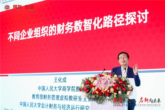 中國人民大學(xué)商學(xué)院教授、全國會計(jì)專業(yè)學(xué)位研究生教育指導(dǎo)委員會副主任王化成以“不同企業(yè)組織的財(cái)務(wù)數(shù)智化路徑探討”為題聚焦企業(yè)進(jìn)化過程的點(diǎn)線面網(wǎng)、價(jià)值網(wǎng)平臺的財(cái)務(wù)數(shù)智化、大企業(yè)集團(tuán)的財(cái)務(wù)數(shù)智化、中小型企業(yè)的財(cái)務(wù)數(shù)智化四個(gè)方面進(jìn)行演講。王化成表示,不同的企業(yè)組織形式,演化出不同的戰(zhàn)略和商業(yè)模式,也產(chǎn)生了不同的財(cái)務(wù)管理,正確理解企業(yè)組織的演進(jìn)和發(fā)展,是探索會計(jì)、審計(jì)和財(cái)務(wù)發(fā)展脈絡(luò)的根基,也是預(yù)測未來發(fā)展方向的出發(fā)點(diǎn)。他指出,平臺型組織可以概括為在線化、數(shù)據(jù)化、智能化、業(yè)財(cái)融合。從世界范圍內(nèi)來看,價(jià)值網(wǎng)平臺型組織已經(jīng)率先實(shí)現(xiàn)了數(shù)智化轉(zhuǎn)型和業(yè)財(cái)融合。隨后,他以開灤集團(tuán)為例詳細(xì)介紹了大企業(yè)集團(tuán)的財(cái)務(wù)數(shù)智化過程和內(nèi)容。