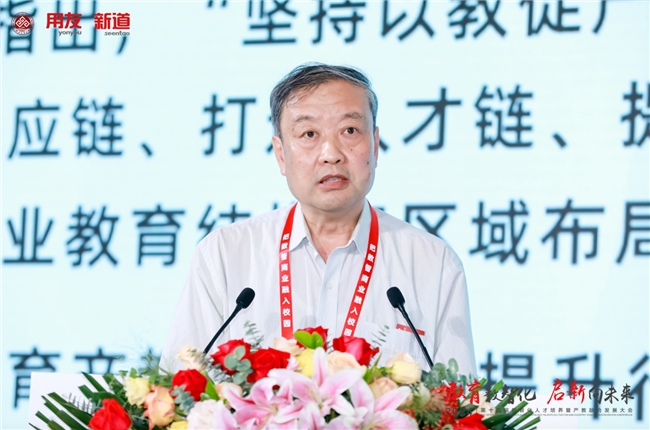 國家督學(xué)、國家教師教育咨詢委員會委員孟慶國聚焦“產(chǎn)教融合再賦能再提升 推動現(xiàn)代職業(yè)教育高質(zhì)量發(fā)展”發(fā)表演講。他介紹,職業(yè)教育產(chǎn)教融合呈現(xiàn)新作為新局面,面對新時(shí)期新變化職業(yè)教育積極識變應(yīng)變,主動適應(yīng)經(jīng)濟(jì)結(jié)構(gòu)調(diào)整和產(chǎn)業(yè)變革,緊盯產(chǎn)業(yè)鏈條、市場信號、技術(shù)前沿和民生需求,推進(jìn)專業(yè)升級和數(shù)字化改造。孟慶國指出,職業(yè)教育產(chǎn)教融合要聚焦突出重點(diǎn)產(chǎn)業(yè)布局和行業(yè)發(fā)展賦能提升,充分體現(xiàn)國計(jì)民生兩大方面;聚焦夯實(shí)職業(yè)院校發(fā)展基礎(chǔ)賦能提升;聚焦調(diào)動地方政府和企業(yè)積極性賦能提升。他提出,職業(yè)教育產(chǎn)教融合亟需再落實(shí)再深化,更多企業(yè)要爭取成為產(chǎn)教融合型企業(yè),職業(yè)院校要努力提高職業(yè)教育對產(chǎn)業(yè)的貢獻(xiàn)度,地方各級黨委和政府要加大對職業(yè)教育的政策供給,財(cái)政支持,積極作為,推動職業(yè)教育的一體兩翼落地。