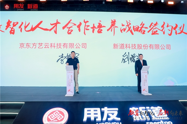2024年,新道科技將與院校持續(xù)深化產(chǎn)教融合,共推教育高質(zhì)量發(fā)展。會議期間,新道科技與多家院校舉行校企合作戰(zhàn)略簽約儀式。同時(shí),新道科技與京東方藝云科技有限公司舉行戰(zhàn)略簽約儀式,雙方將充分發(fā)揮各自優(yōu)勢,深化產(chǎn)教融合,構(gòu)建校企協(xié)同育人新格局。