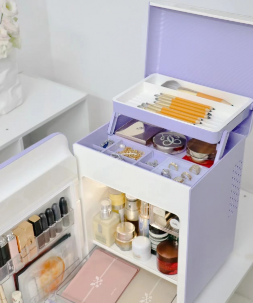 的確使用一段時間之后,我對歌嵐養(yǎng)膚美妝冰箱真的是越來越愛啊,它功能方面的表現(xiàn)真的是讓人嘎嘎滿意。收到歌嵐養(yǎng)膚美妝冰箱之后,我就把口紅、水乳、精華統(tǒng)統(tǒng)放進去,不得不說這款是真的非常能裝,冰箱頂部還有專門放置化妝工具和首飾的地方,當然了顏值還非常高,星黛紫的顏色特別夢幻,一下子就戳中了我的少女心。
