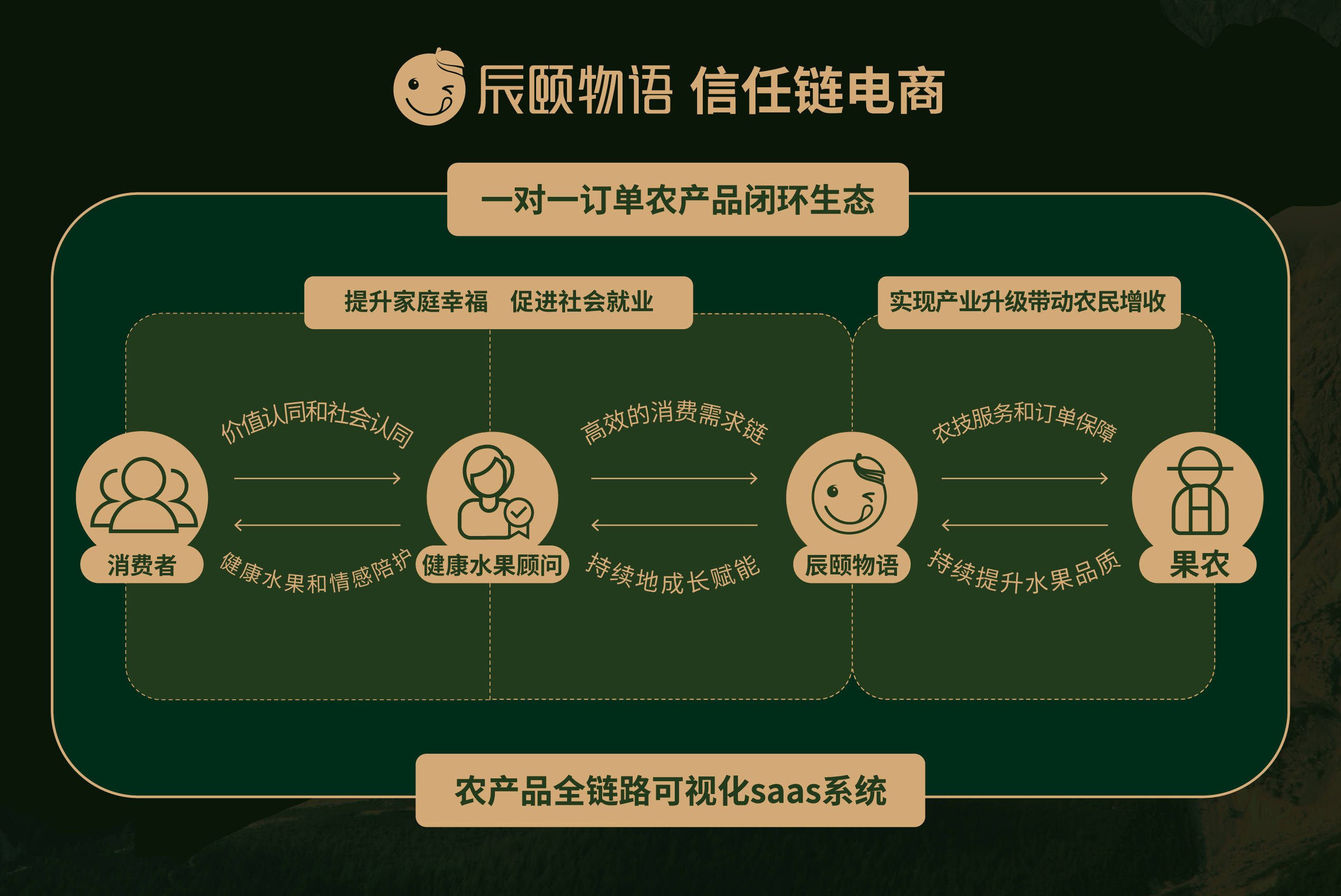 辰頤物語,堅守公益助農為文化基因,踐行鄉(xiāng)村振興戰(zhàn)略,切實帶動果農增收。
