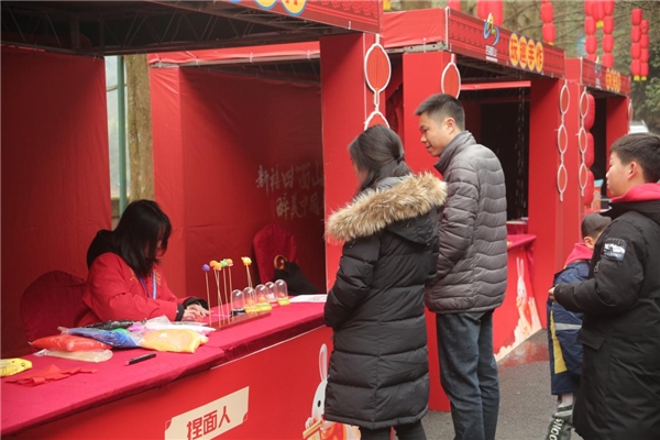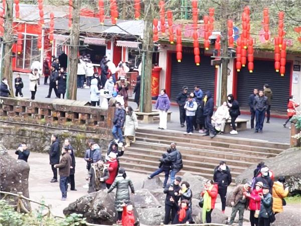 營造歡樂喜慶、紅火消費、平安祥和的佳節(jié)氛圍,是本次新春系列活動的線下部分的重中之重。春節(jié)期間,四面山景區(qū)張燈結(jié)彩、年味兒十足。龍?zhí)逗?、會龍莊、望鄉(xiāng)臺等熱門景點游人如織,游客們紛紛打卡積福抽福簽,并積極參與成語接龍等互動游戲,觀景、游樂、贏好禮。其中,位于望鄉(xiāng)臺景區(qū)的民俗市集最為熱鬧,當?shù)剞r(nóng)特產(chǎn)深受游客喜愛,助增收、促銷費意義凸顯。