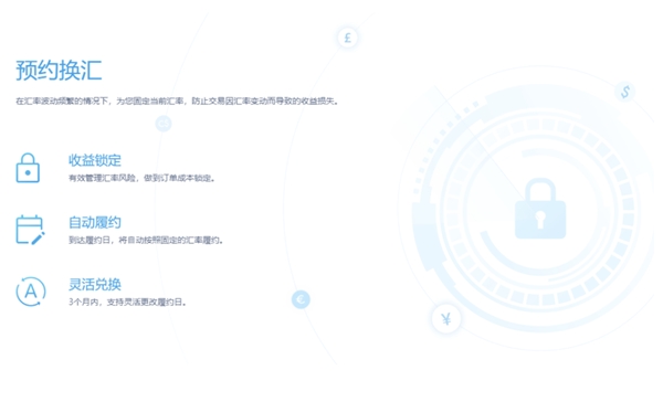 而面對(duì)匯率頻繁地波動(dòng),PingPong 福貿(mào)「預(yù)約換匯」功能可以幫助外貿(mào)企業(yè)守護(hù)理想?yún)R率。你可以通過(guò)點(diǎn)擊「預(yù)約換匯」功能,申請(qǐng)固定未來(lái)某一日期的匯率,在履約日按申請(qǐng)的固定匯率由系統(tǒng)自動(dòng)換匯。
