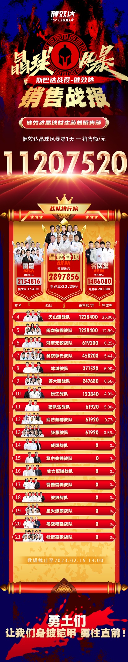 開(kāi)局即領(lǐng) 跑,征途必勝利,斯巴達(dá)戰(zhàn)役——健效達(dá)晶球風(fēng)暴,風(fēng)暴還在狂飆,戰(zhàn)局還在繼續(xù),21支戰(zhàn)隊(duì)集結(jié)完畢,秣馬厲兵,來(lái)勢(shì)洶洶,誰(shuí)將黑馬崛起,我們拭目以待!