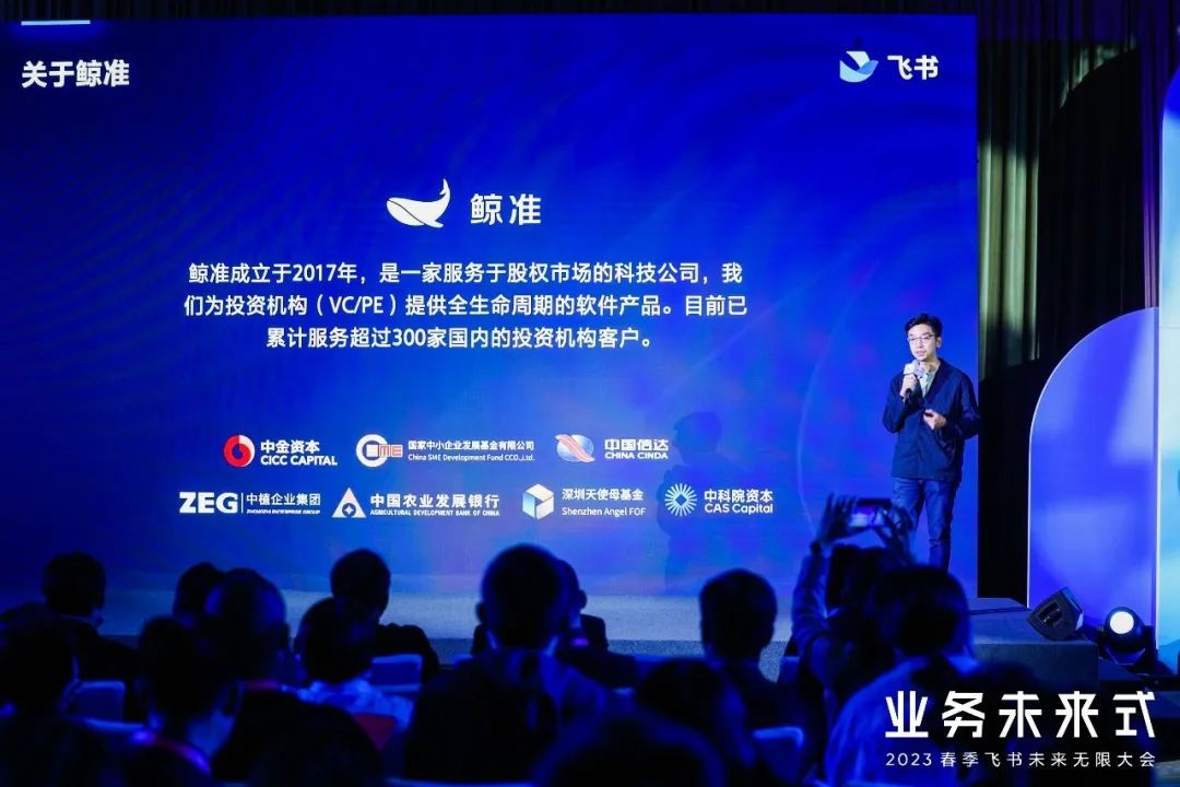 3月22日上午,飛書春季未來無限大會在北京舉辦。在生態(tài)分會場,飛書推出了一款和鯨準獨 家合作的、面向投 資機構的SaaS產品——投 資云。
