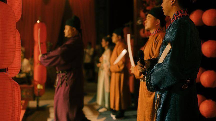 無論是唐、宋、明哪個朝代的婚禮,趙亞偉先生都帶領團隊盡力還原?;樗讖墓胖两穸际俏覀儾豢苫蛉钡奈幕?,在許多方面仍然影響著人們的生活?,F(xiàn)今越來越多的新人喜歡中式婚禮,趙亞偉先生作為婚俗非遺傳承人,立志弘揚發(fā)展傳統(tǒng)文化,做有文化的婚禮!