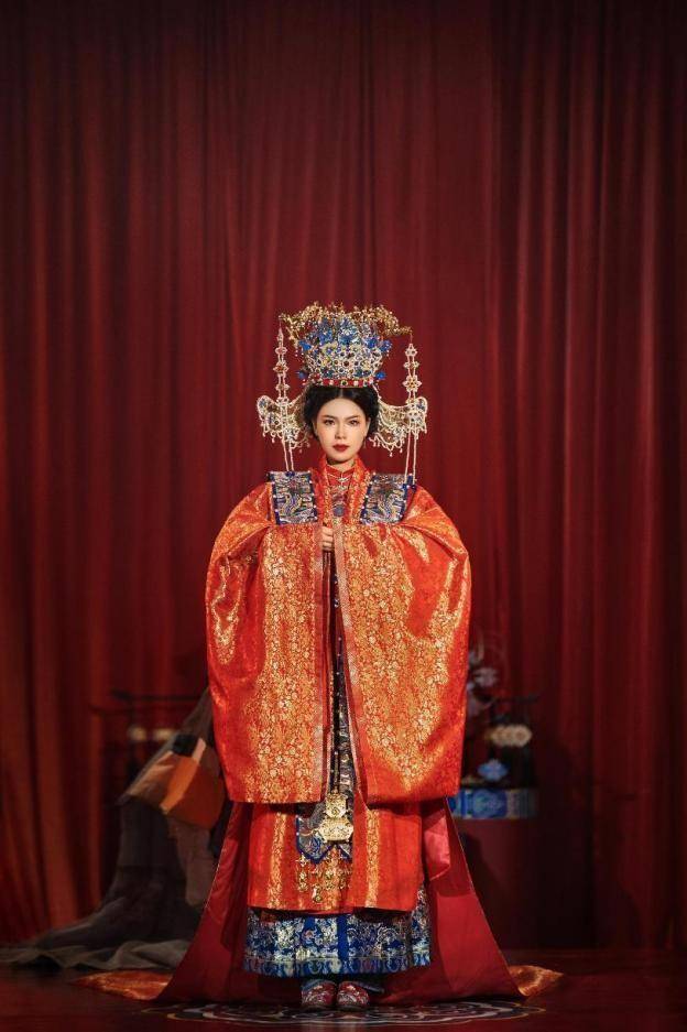 明制婚禮,是中式婚禮雍容華貴的突出體現(xiàn),多金且色彩斑斕。明代是霞帔發(fā)展的巔峰時期,此時的霞帔體系已經(jīng)發(fā)展成熟。官方對霞帔的紋樣、顏色、制作工藝等作出了詳細的規(guī)章制度,并對穿著霞帔的人群做了嚴格的規(guī)定。此時的霞帔因種種裝飾己被賦予了復雜的思想內涵,是象征喜慶、代表祝福和身份的外在表現(xiàn)形式。