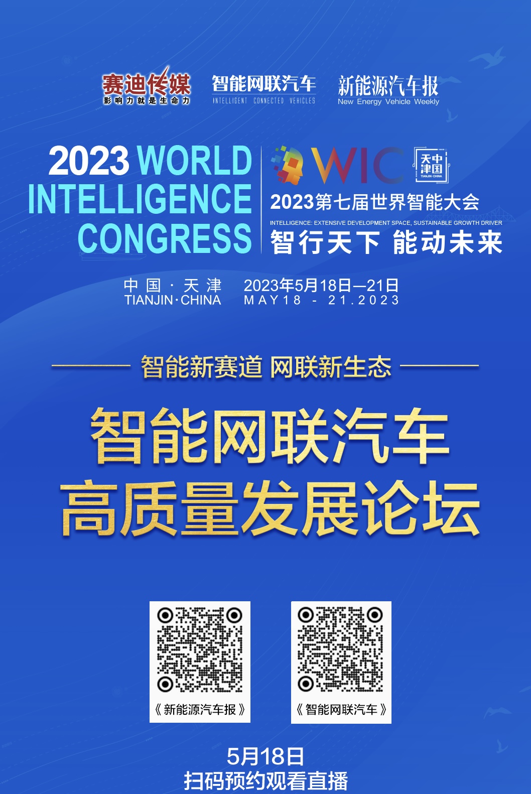 天津世界智能大會由國家發(fā)展和改革委員會、科學(xué)技術(shù)部、工業(yè)和信息化部、國家廣播電視總局、國家互聯(lián)網(wǎng)信息辦公室、中國科學(xué)院、中國工程院、中國科學(xué)技術(shù)協(xié)會和天津市人民政 府共同主辦,將于 2023 年 5 月 18 日-21 日在國家會展中心(天津)隆重召開。大會自創(chuàng)辦以來成功舉辦六屆,已成為世界智能科技領(lǐng)域?qū)W術(shù)交流、展覽展示、開放創(chuàng)新、深化合作的頂 級盛會。
