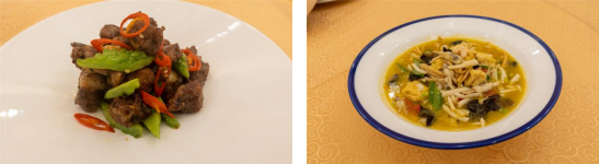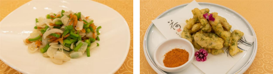 百合櫻花蝦、脆皮茴香魚柳,則為客人們帶來(lái)一番海的味道。蝦肉粉紅透明,顏色像櫻花一樣美麗,和脆嫩的百合在一起,鮮味濃郁可口。茴香和魚柳的碰撞則是另一番風(fēng)味,外焦里嫩、味道鮮美,咔嚓咔嚓吃起來(lái),根本停不住嘴。