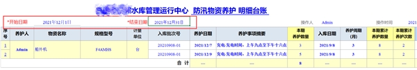 系統(tǒng)自動按照任意時間段生成物資養(yǎng)護明細臺賬,不再需要手工登記,大量減輕工作量,查詢統(tǒng)計數(shù)據(jù)高效、快捷、準確。